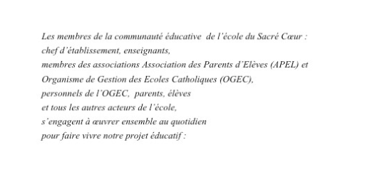 Nous sommes heureux de vous présenter l’école du Sacré Cœur. Nous espérons qu’à travers ce site, vous découvrirez les valeurs éducatives vécues et les différentes activités proposées aux enfants pour favoriser leur épanouissement personnel.